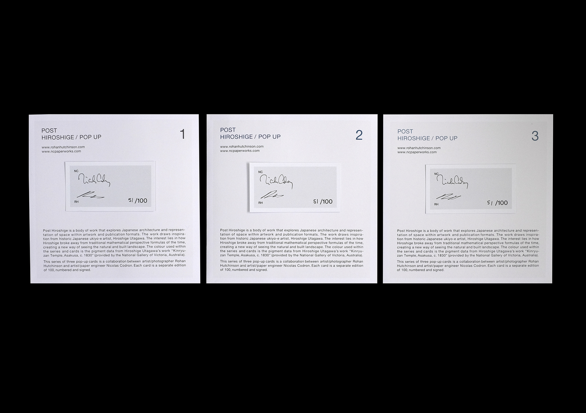 Post Hiroshige consists of a series artworks, a set of 3 of hand made
